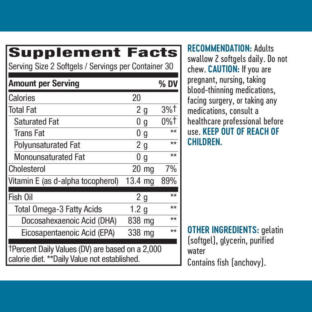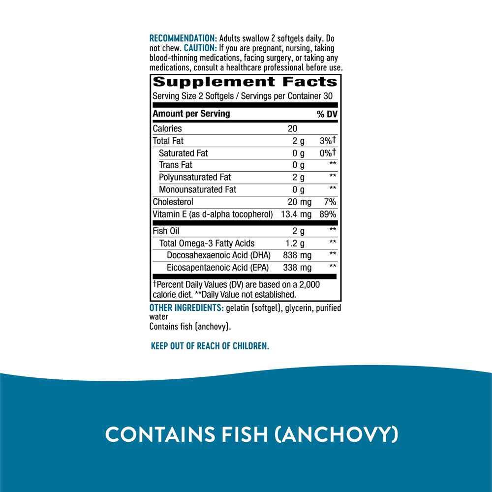 Vitamin E (as d-alpha tocopherol), Fish Oil (Anchovy), Omega-3 Fatty Acids, Docosahexaenoic Acid (DHA), Eicosapentaenoic Acid (EPA), gelatin (softgel), glycerin/div>