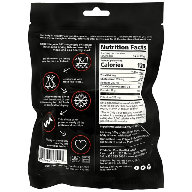 - THE NORDIC CATCH WAY: We have carefully selected products that meet the Nordic Catch Standards, so you can trust the quality, consistency, and service you would expect from us. Our Freeze Dried Cod Bites are sustainably sourced from Iceland and shipped carbon neutral across the USA