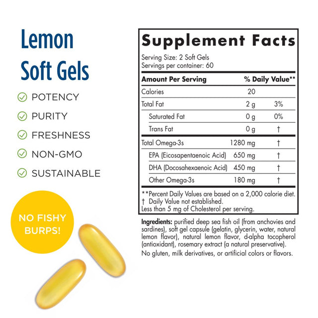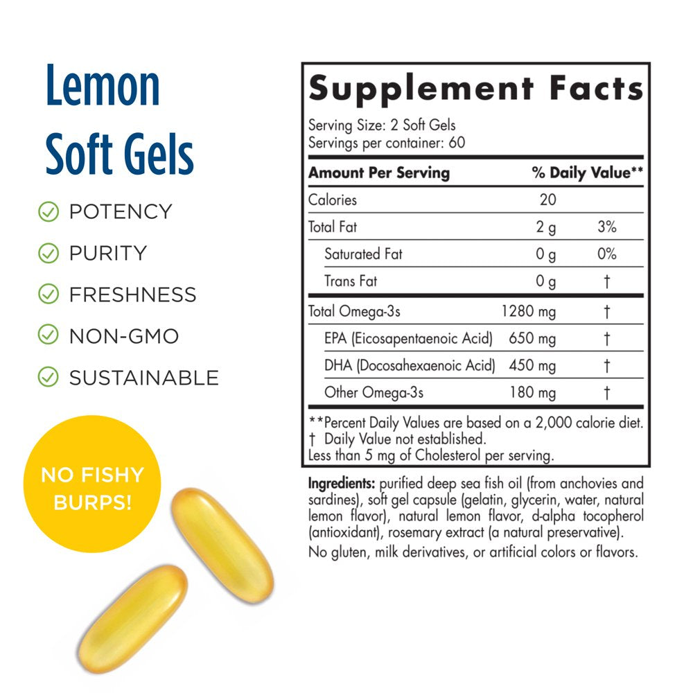 Nordic Naturals Ultimate Omega Softgels, Lemon, 1280 Mg, Fish Oil, 120 Ct