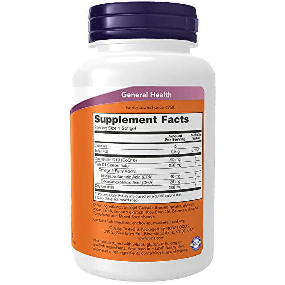 NOW Supplements, CoQ10 60 mg with Omega 3 Fish Oil, Cardiovascular Health*, 120 Softgels