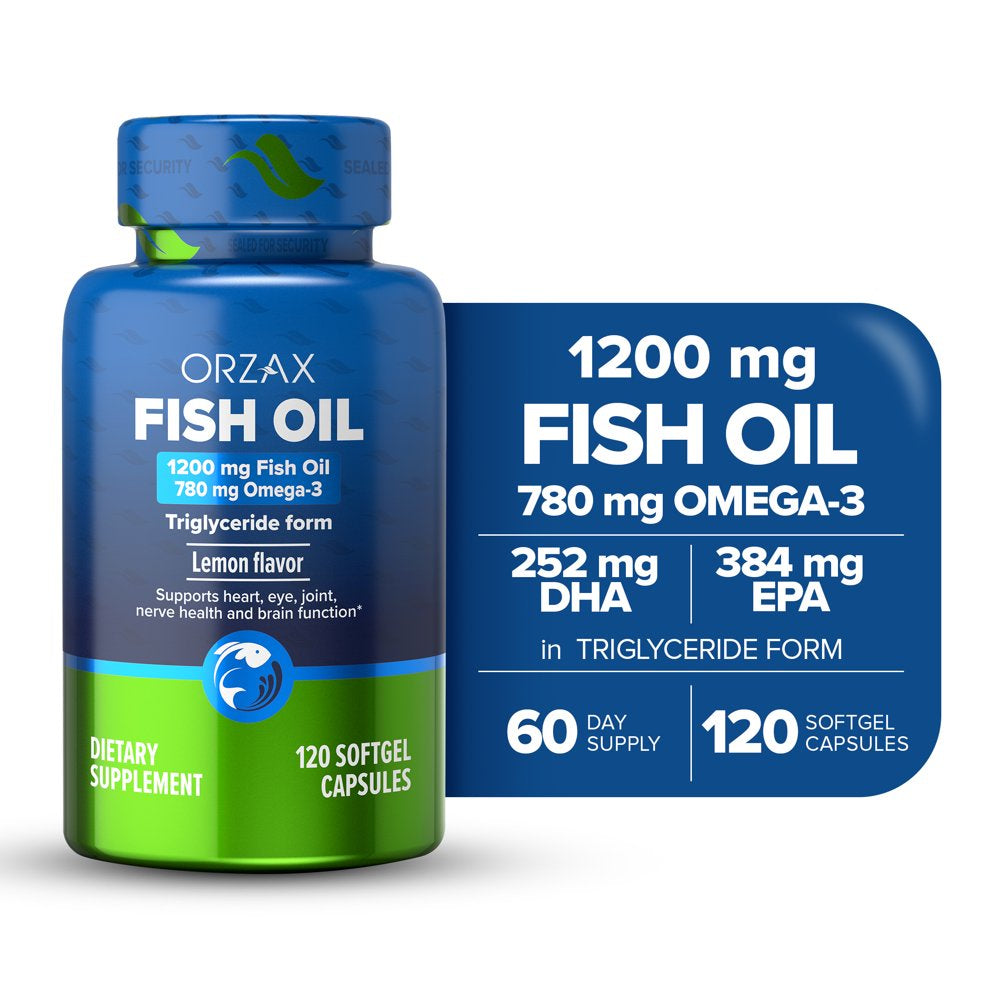 Support your health with ORZAX Fish Oil, fish oil softgels containing EPA and DHA. Each softgel is packed with 300mg of Omega-3 fatty acids, making them ideal for supporting your heart health and providing the support needed for joints. This formula is also formulated to increase mental clarity and nerve health so you can perform at your best every day. It contains vitamin C, vitamin D and other important nutrients to strengthen your immune system and protect against free radicals. Contains anti-inflammatory properties to support the health of your respiratory system. ORZAX Fish Oil 1200 mg is lemon flavored and this bottle of 120 softgels offers a 60-day supply and can be a staple in your daily wellness routine.