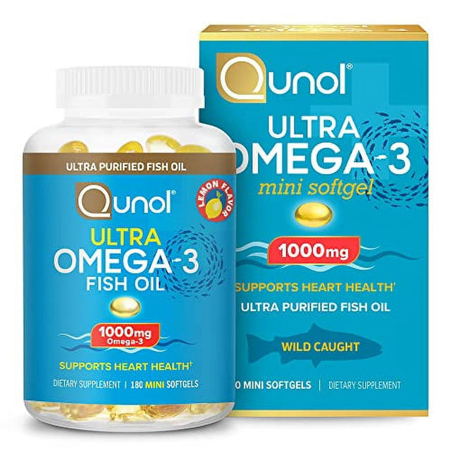 Qunol Omega 3 Fish Oil Mini Softgels, 1000Mg Ultra Pure Fish Oil, Heart Health Support, Omega 3 DHA Supplements, Lemon Flavor, 3 Month Supply, 180 Count is backordered and will ship as soon as it is back in stock.