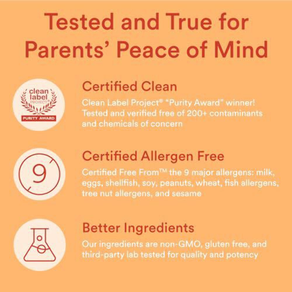 - Certified Clean, Third Party Tested Formula: Our kids vitamins are a Clean Label Project Purity Award Winner! Subjected to strict testing for 200+ contaminants and chemicals, so you can be sure you're giving your family high quality vitamins you can trust