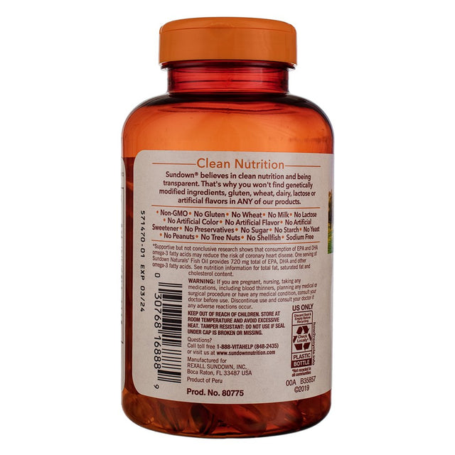 - Sundown Fish Oil 1200 mg, Omega-3 Dietary Supplement, Supports Heart Health, 100 Softgels (Packaging May Vary)