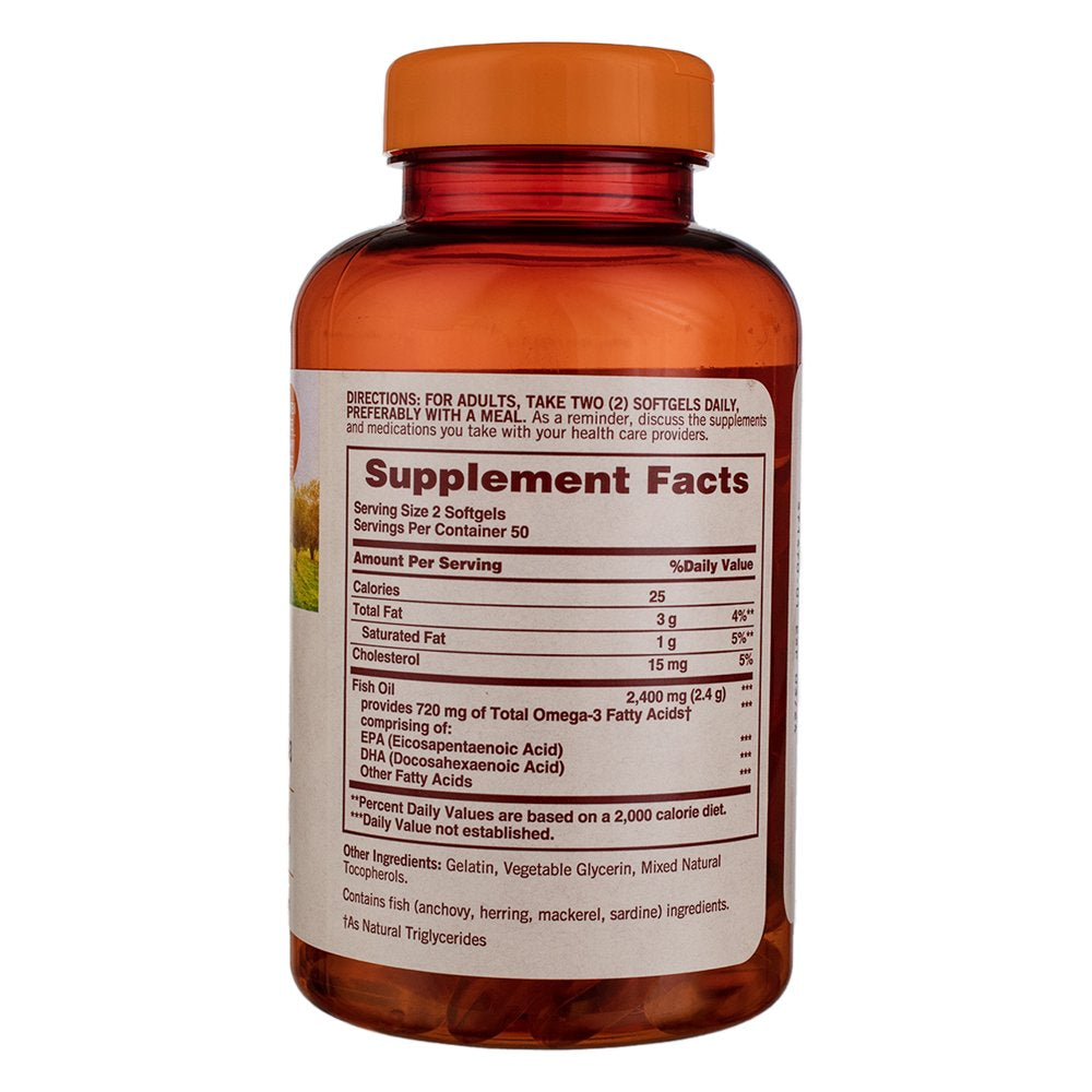 Sundown Fish Oil 1200 Mg, Omega-3 Dietary Supplement, Supports Heart Health, 100 Softgels (Packaging May Vary)