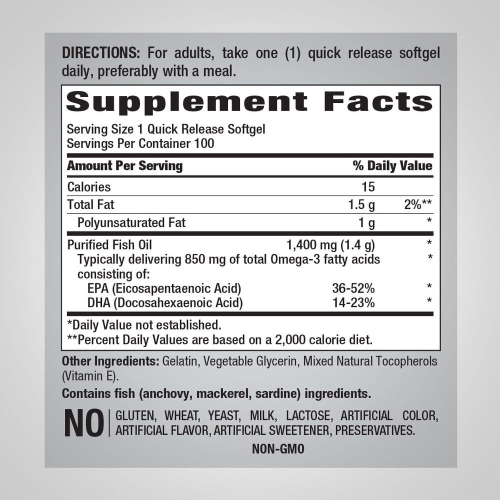 Triple Strength Fish Oil: Our Fish Oil contains EPA and DHA, two Omega-3 fatty acids that help support and maintain the health of the cardiovascular system. ** Each quick release softgel contains 1360 mg per serving of our fish oil and is purified to eliminate Mercury as well as other heavy metals. With the convenience of only taking one daily, what’s stopping you?