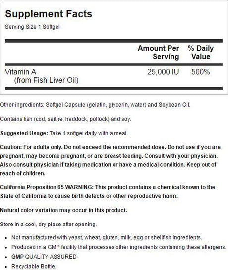 NOW Supplements, Vitamin a (Fish Liver Oil) 25,000 IU, Essential Nutrition, 250 Softgels