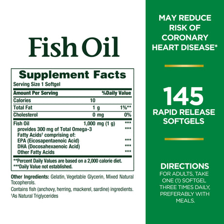 Nature'S Bounty Fish Oil with Omega 3 Softgels, 1000 Mg, 145 Ct