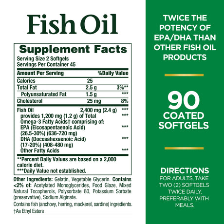 Nature'S Bounty Fish Oil Softgels, Double Strength, 2400 Mg, 90 Ct
