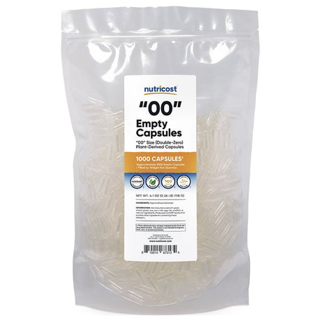 Nutricost Empty Capsules Size 00 Vegan - 1,000 Clear Empty Plant-Based Capsules