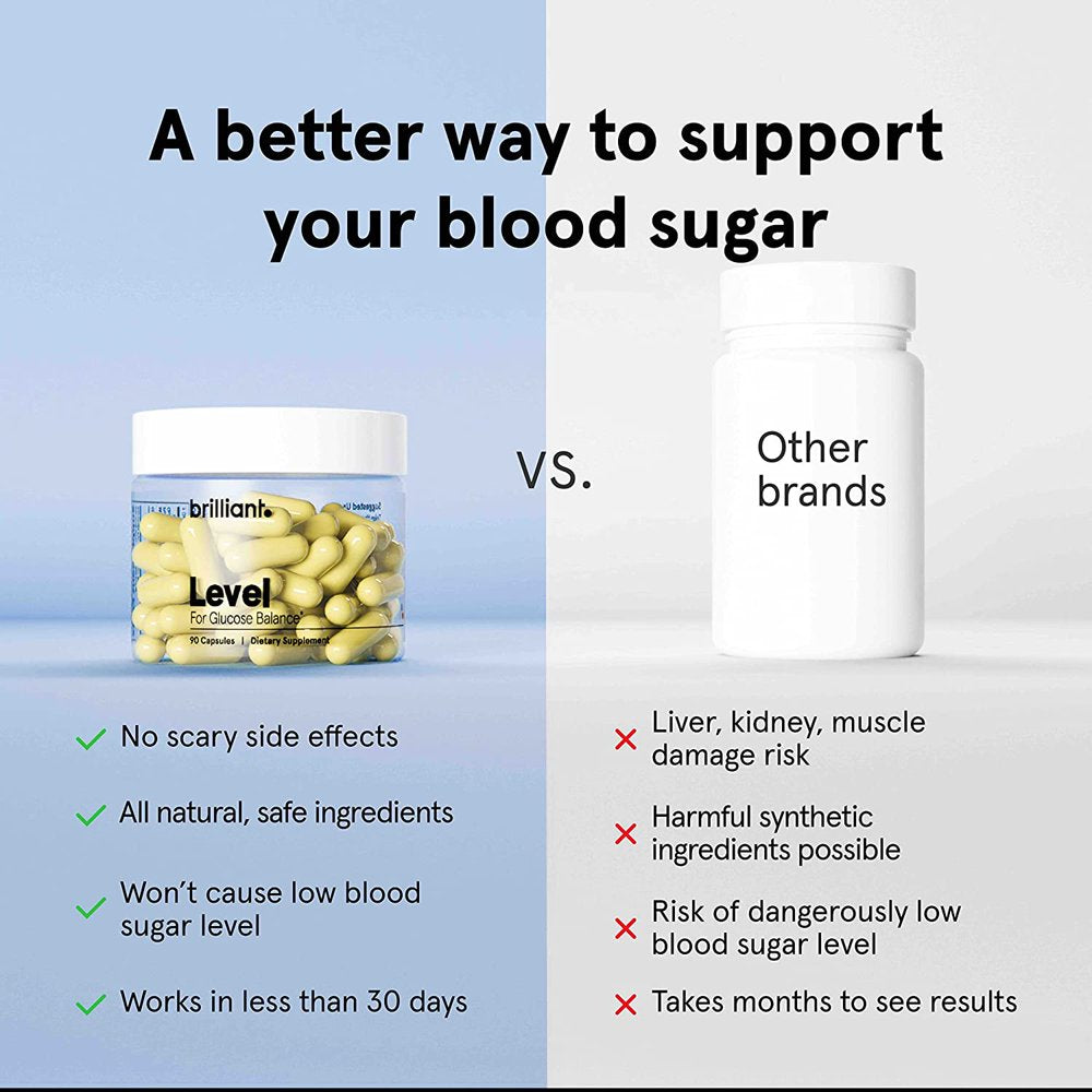 Glucose supplement that’s safe and natural. Brilliant Level is a glucose balance supplement that uses an exclusive, curated blend of plant-based phytonutrients for healthy glucose levels already within the normal range.