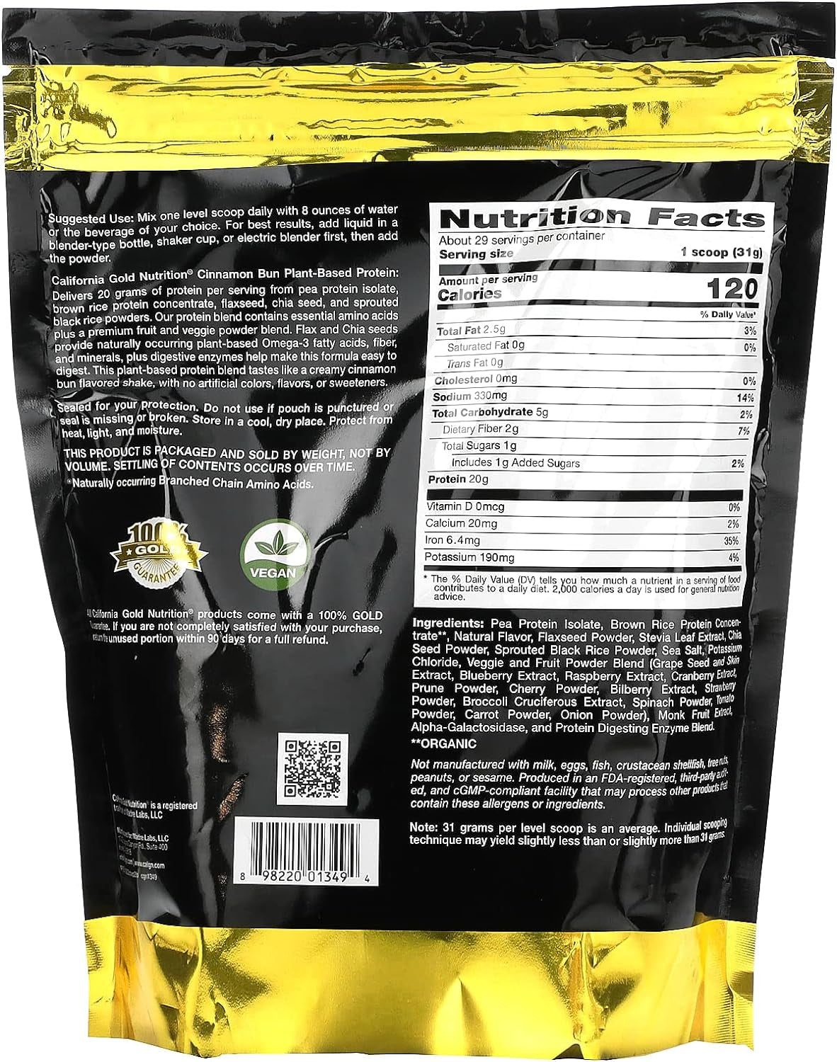 California Gold Nutrition Plant-Based Protein, Cinnamon Bun, 2 Lb Pouch