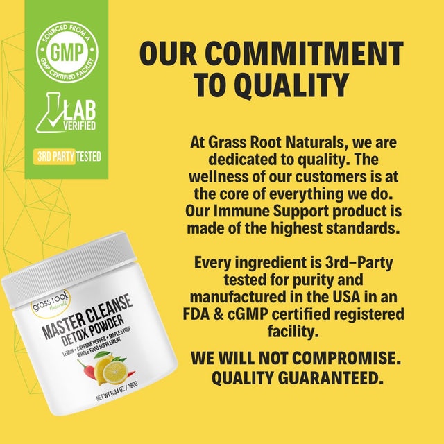 • Premium Quality - At Grass Root Naturals, we put a high price on the quality of our ingredients. That is why the Master Cleanse detox juice cleanse powder is a whole-food supplement and the result of carefully selected natural ingredients, processed and prepared in GMP-certified facilities to make sure all the nutrients, freshness and natural properties remain intact.