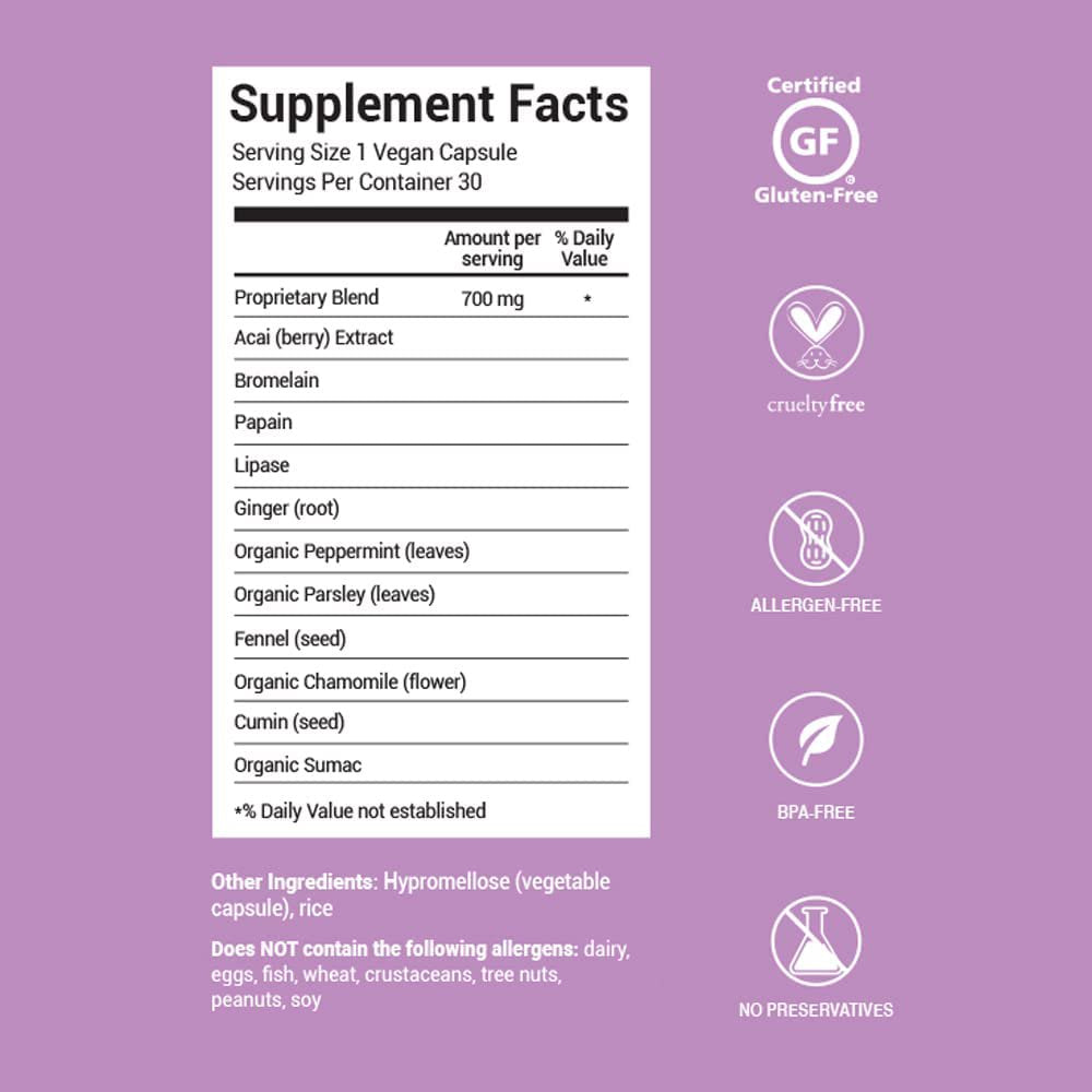 - TARGETS DIGESTIVE ISSUES - Our vegan BLOATamin supplement capsule is formulated with a synergistic blend of 11 herbs and super fruit digestive enzymes to help target common food and hormone-related digestive issues. It supports a flatter tummy and gut health by reducing symptoms of bloating, gas, stomach pain, and discomfort.