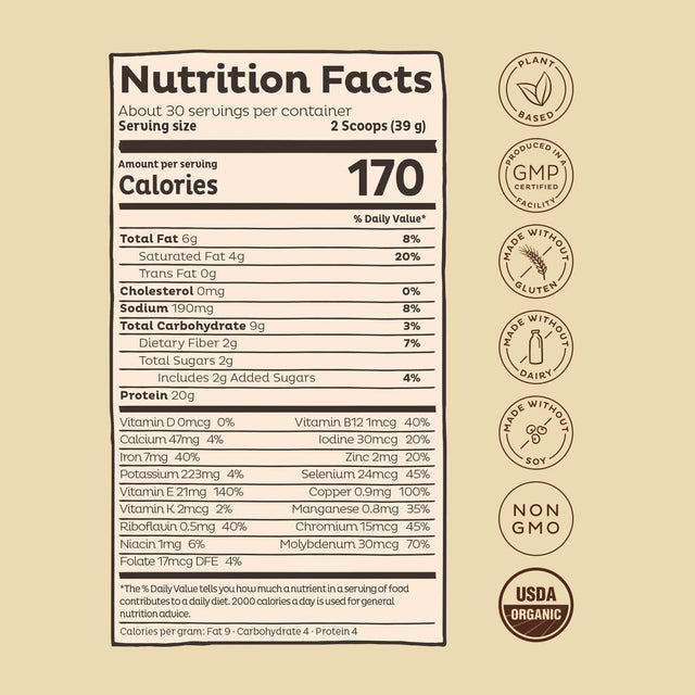 - 5 PROTEIN BLEND: We incorporate 100% non-GMO Pea, Flax Seed, Quinoa, Pumpkin Seed and Chia Seed Protein into our proprietary formula, all of which are USDA organic, gluten, soy and dairy free.