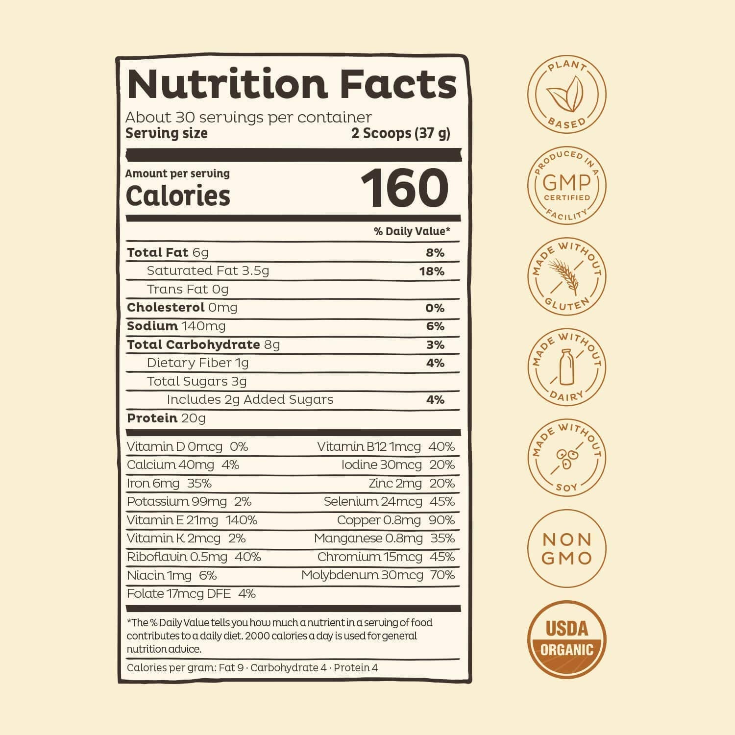 - 5 PROTEIN BLEND: We incorporate 100% non-GMO Pea, Flax Seed, Quinoa, Pumpkin Seed and Chia Seed Protein into our proprietary formula, all of which are USDA organic, gluten, soy and dairy free.