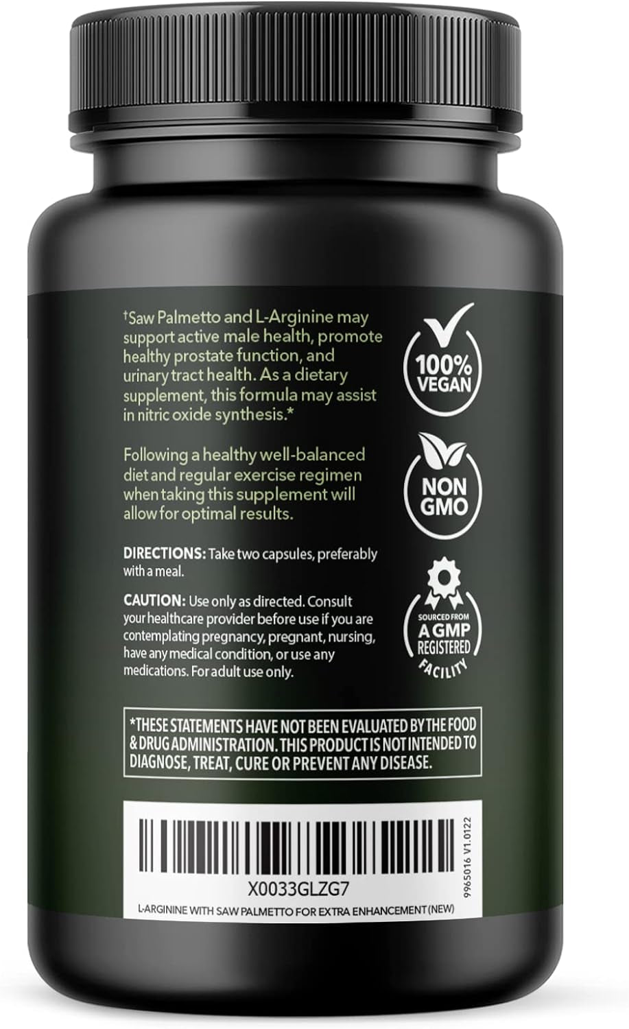 L Arginine Saw Palmetto for Men with S7 Plant-Based Ingredient Blend for Nitric Oxide Boost | Increases Blood Flow and Improves Prostate Support | Active Male Supplement | 60 Vegan Capsules is backordered and will ship as soon as it is back in stock.