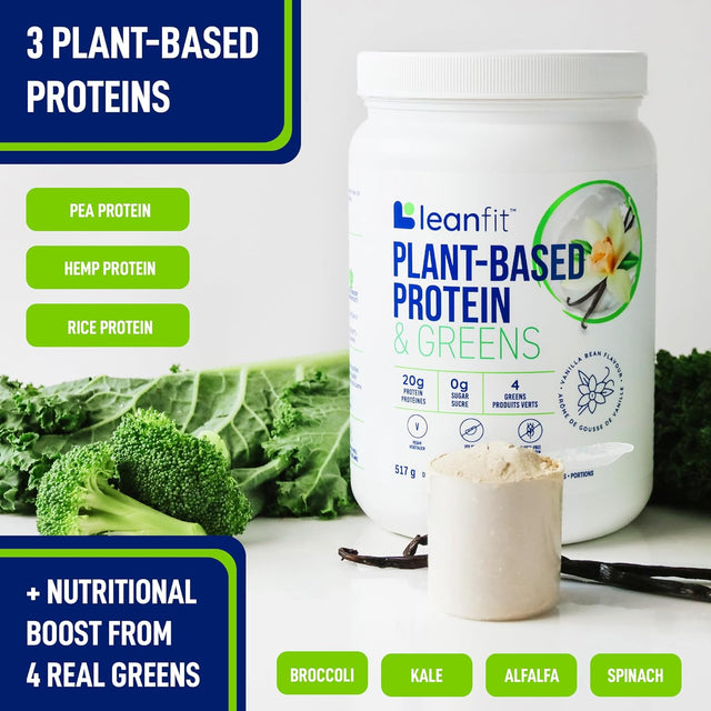 Fuels Your Daily GoalsAmplify what you can do every day with LEANFIT PLANT-BASED PROTEIN & GREENS. As part of a complete amino acid profile, it helps to repair and rebuild muscle, decrease muscle soreness and exercise fatigue, and provide energy. | Excellent Source of IronAdding protein and greens to your day has never been easier! Get a nutritional boost from 4 real greens to support your immune function and give your body a natural source of iron that is equivalent to 7 cups of raw spinach. | Clean Ingredients You Can TrustA delicious blend of 3 plant-based proteins including pea, rice, and hemp protein, plus 4 greens including kale, broccoli, spinach, and alfalfa. Free from preservatives, artificial colors, artificial flavors, and more. Fun Fact: We use Canadian-grown hemp protein that is manufactured in our very own facility in Alberta! |