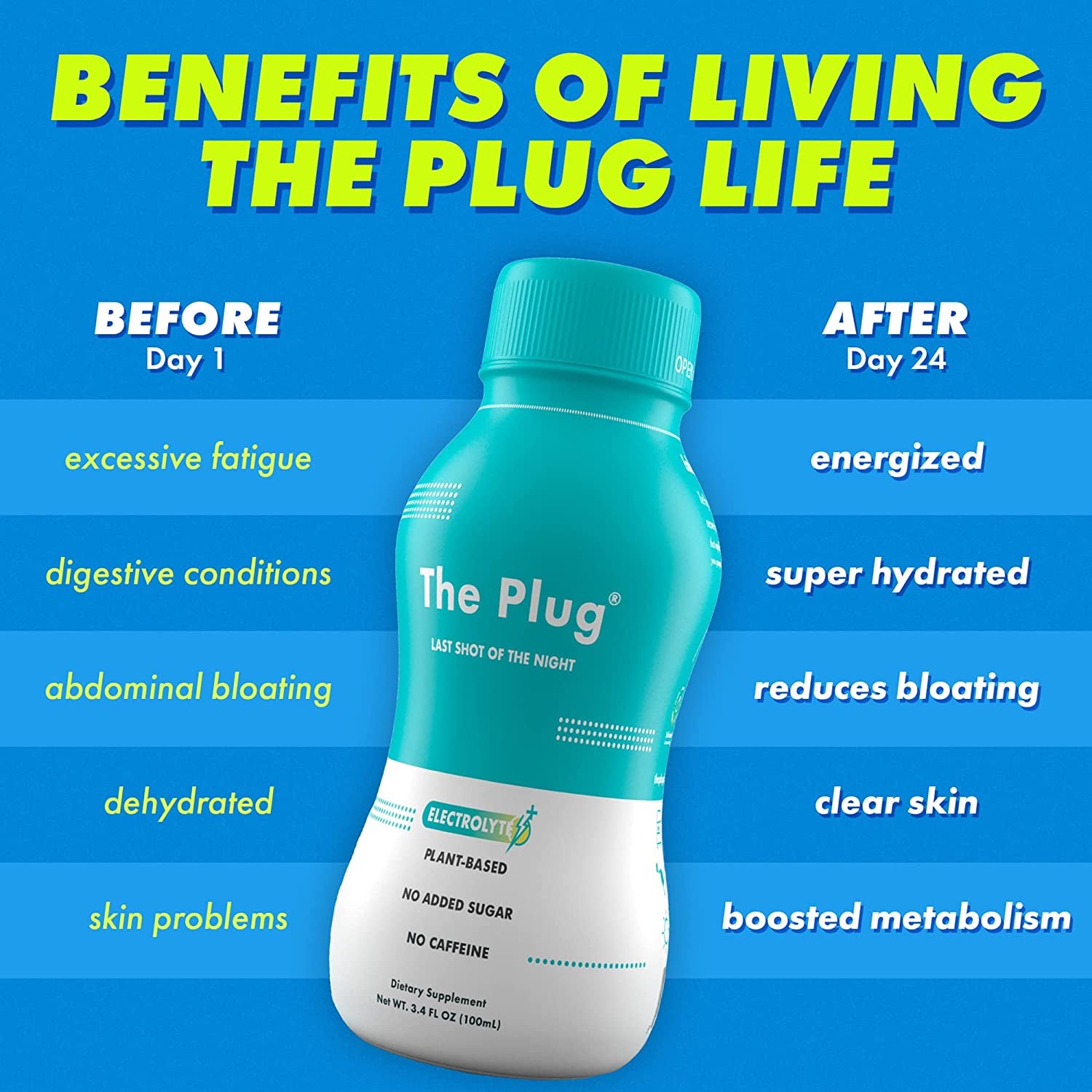 - Hydrate & Recover Naturally: With the help of electrolytes, The Plug super-hydrates your system so you can wake up headache-free and ready to start the day with a boost of energy. No caffeine, no sugar, no artificial stuff. Kosher certified, gluten-free, and non-GMO.*
