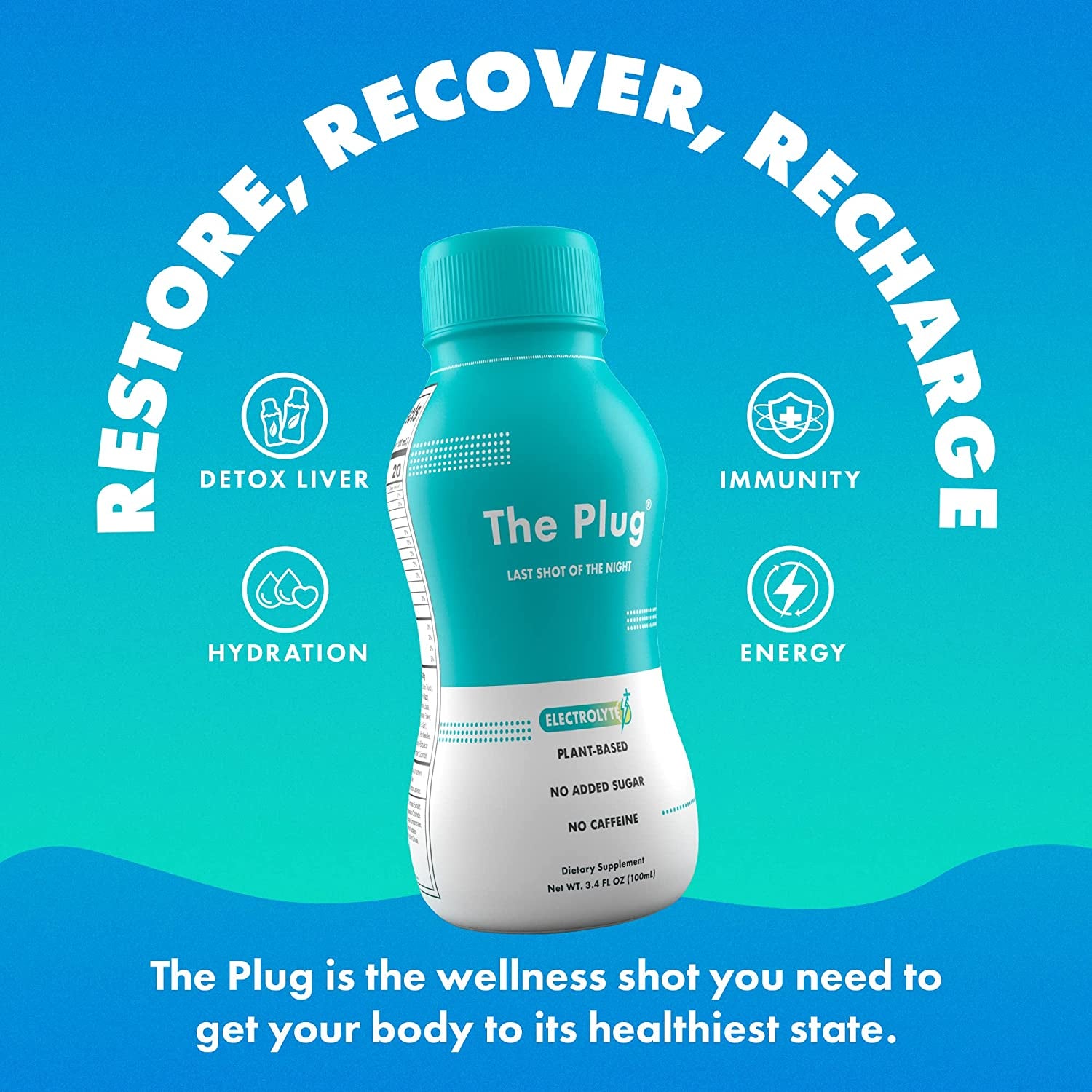 - Restore, Recover, Recharge: We designed The Plug Drink as a wellness shot so you can get what you need to restore your body back to its healthiest state. With the highest herbal concentration on the market and a deliciously smooth, tropical superfruit taste, The Plug is here to keep you on your A-game. 2-pack of 3.4 fl oz bottles.*