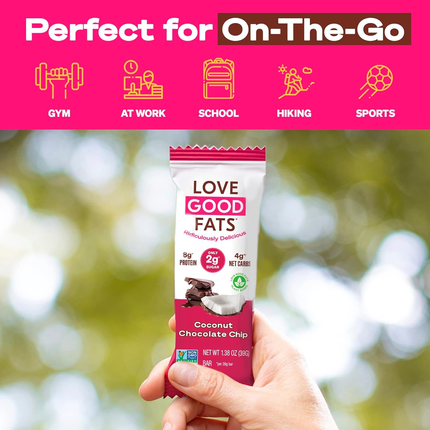 - Keto On The Go: These low sugar, low carb protein bars are an easy grab-and-go snack for your busy lifestyle; grab a rich and creamy Coconut Chocolate Chip bar for breakfast, before a workout, when you’re traveling, or for a snack between meals