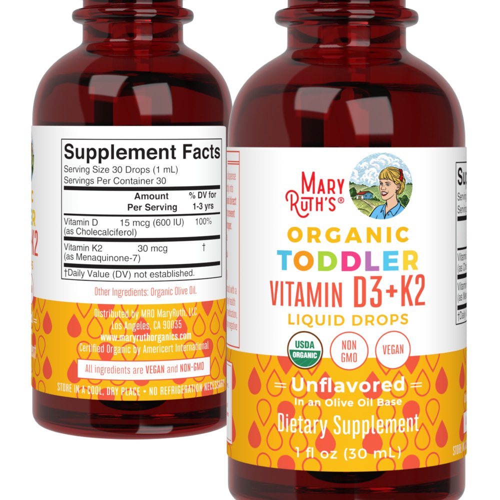 Maryruth Organics | Vitamin D3+K2 Liquid Drops | Unflavored | Non-Gmo, Vegan, Plant-Based | 1 Fl Oz | Unisex | Overall Wellness |
