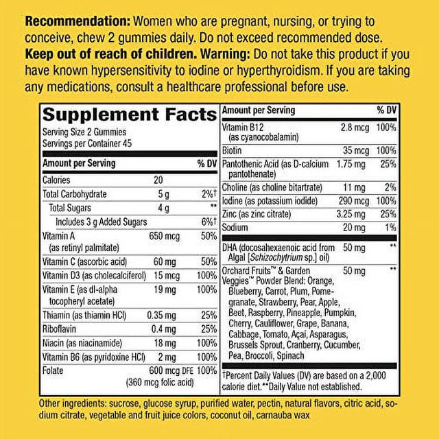 Nature’S Way Alive! Daily Support Prenatal Gummies, 50Mg Plant-Based DHA per Serving, Vegetarian, 90 Gummies, Orange and Raspberry Lemonade Flavored