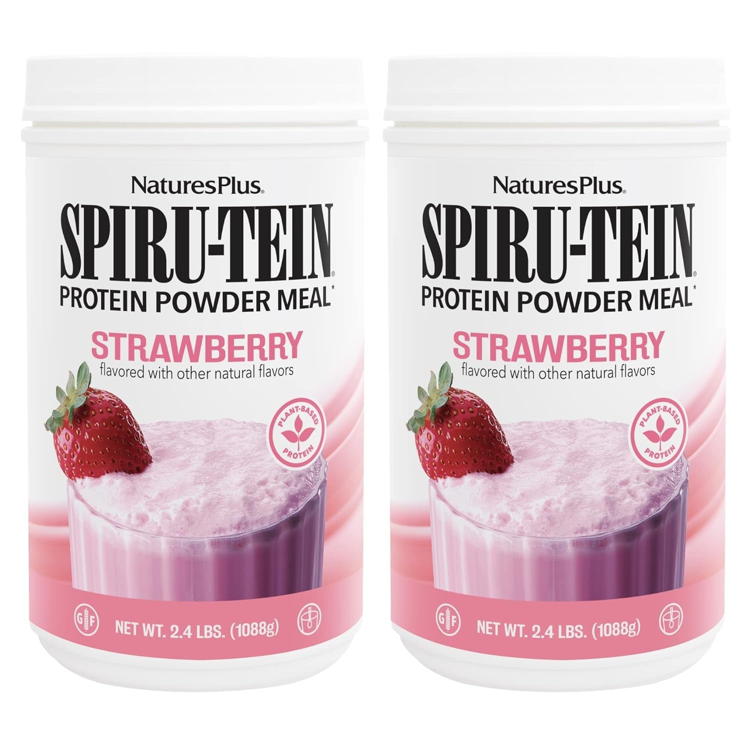 Naturesplus SPIRU-TEIN, Strawberry - 2.4 Lb, Pack of 2 - Plant-Based Protein Shake - Non-Gmo, Vegetarian, Gluten Free - 64 Total Servings