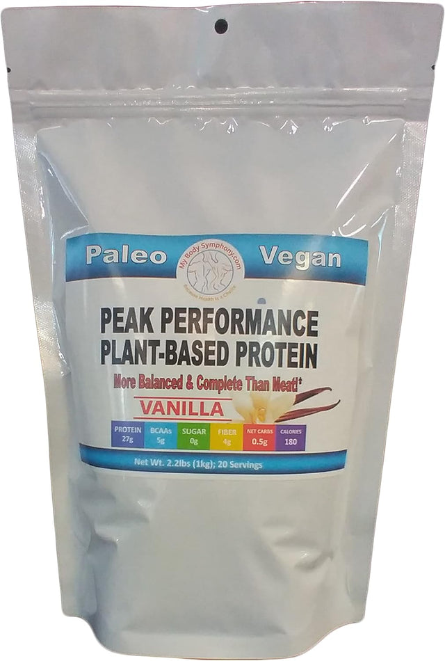 Peak Performance Plant-Based Protein by Body Symphony | Vanilla | Organic Pumpkin Seed Protein | Has 11 Vital Nutrients Normally Only Found in Meat | Vegan, Paleo, Keto Friendly | 2.20 Lbs 20 Servings