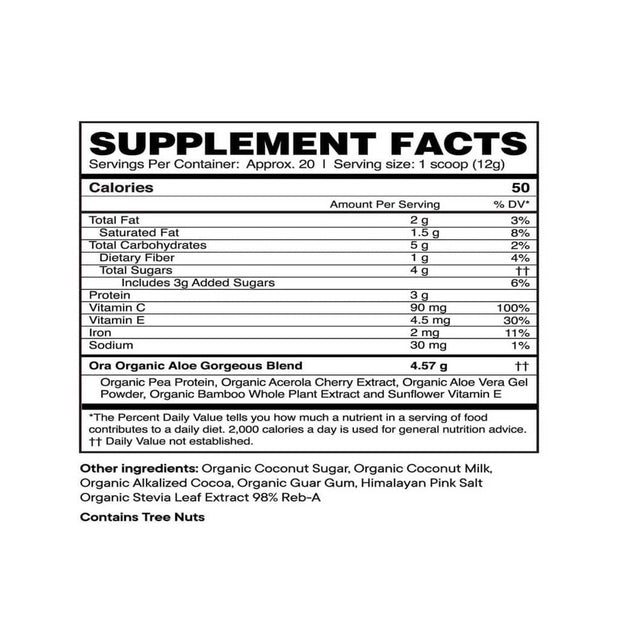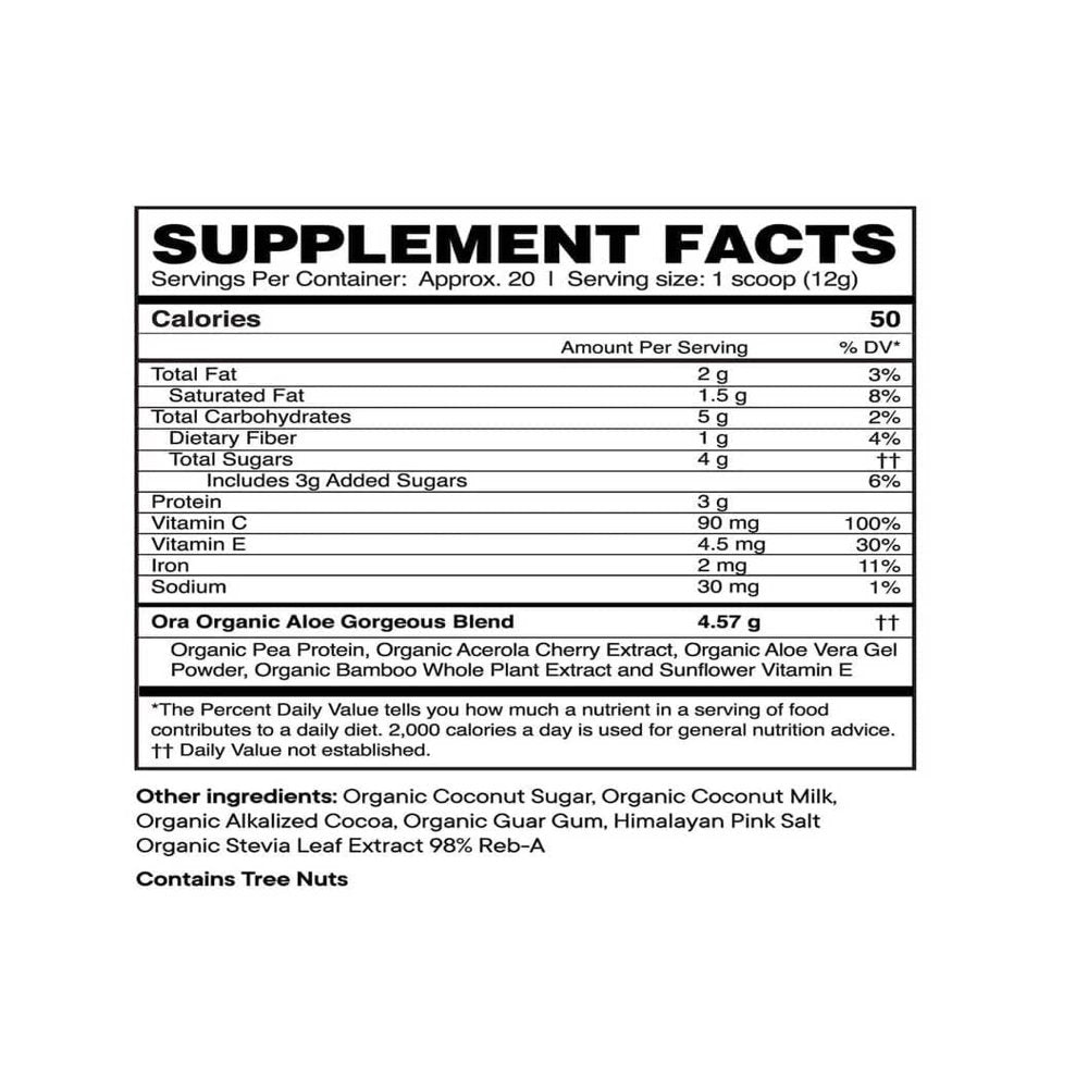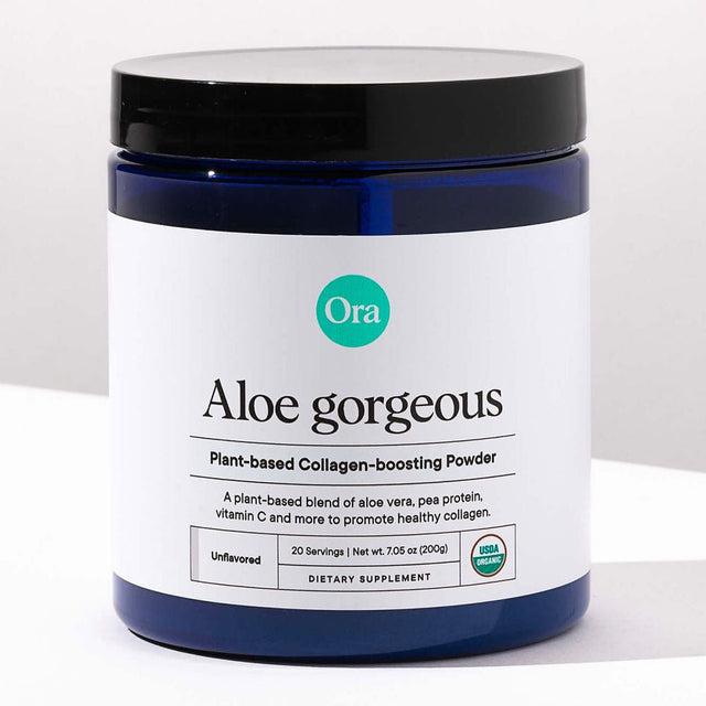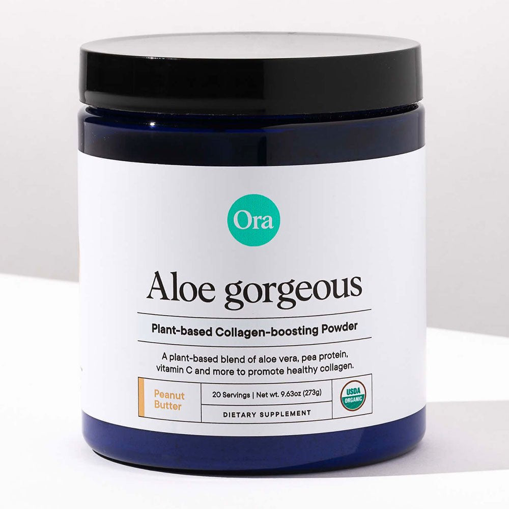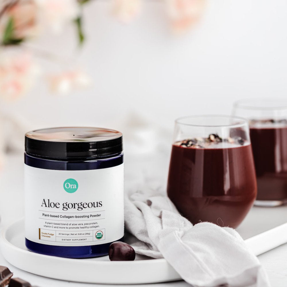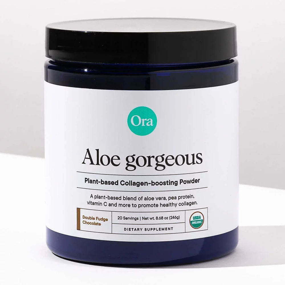 Aloe Gorgeous is an Organic and Vegan Collagen-boosting Powder packed with aloe vera, protein, silica, and vitamins C and E.