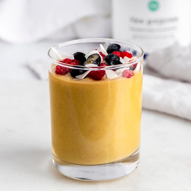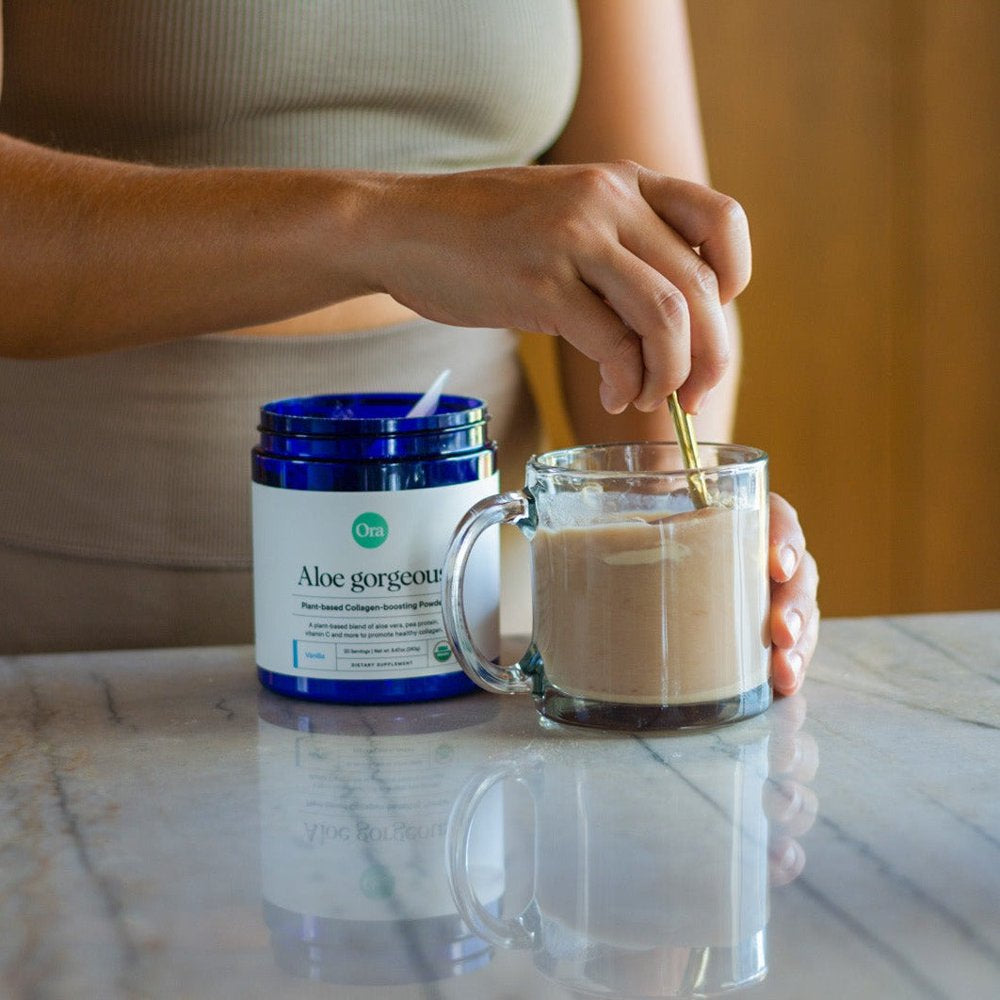 Our favorite technique is to add one scoop of Aloe Gorgeous to a cup with a dash of hot water and mix to create a paste. Then, add in your favorite plant-based milk or coffee and stir thoroughly.