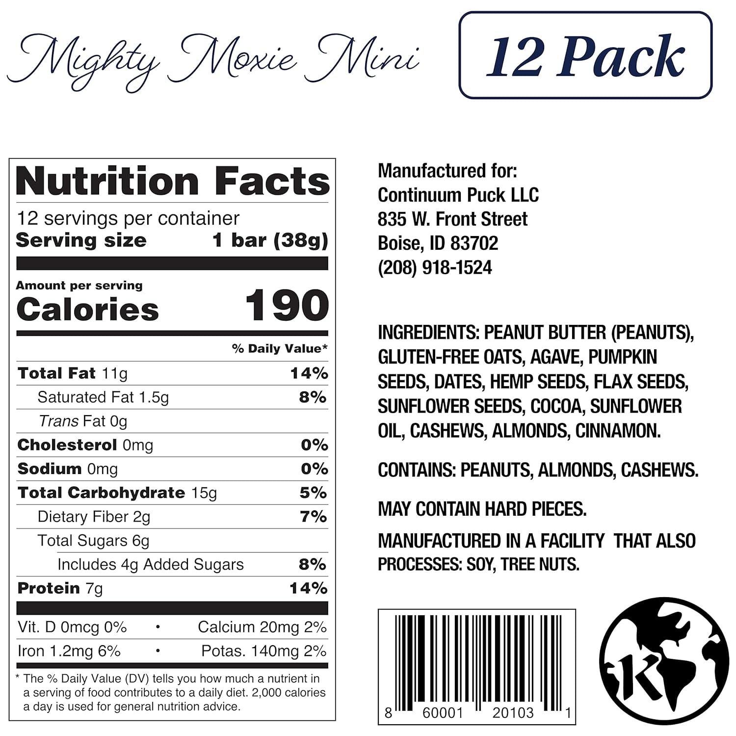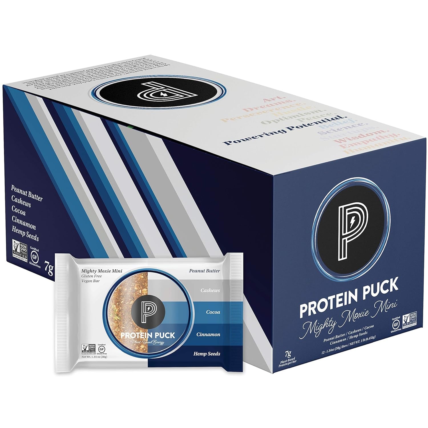 Protein Puck Mini Protein Bars, Mighty Moxie, Case of 12 - High Protein Snacks with 7 Grams of Vegan Protein - Gluten-Free, Non-Dairy, Non-Gmo Breakfast Snack Bar - Premium Plant-Based Healthy Snacks