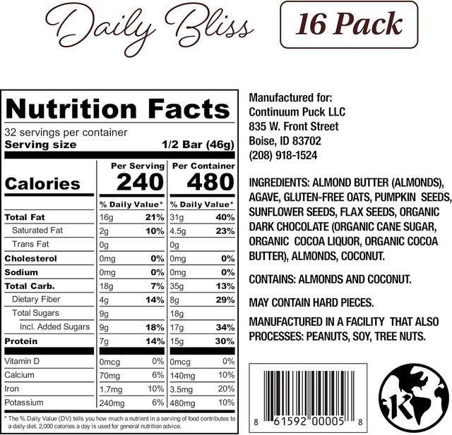 Protein Puck Value Bundle, Case of 12 Full Size Daily Bliss + Case of 16 Mini Daily Bliss - Plant-Based Bars, High Protein Snacks with Vegan Protein - Gluten-Free, Non-Dairy, Non-Gmo Snack Bar is backordered and will ship as soon as it is back in stock.