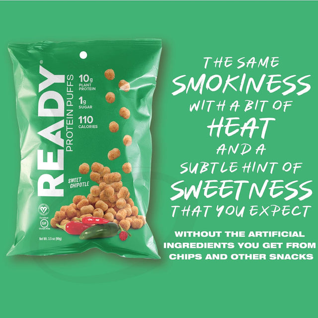 Ready Protein Puffs, 10G Plant-Based Protein, Gluten-Free, Vegan, Non-Gmo, Chipotle, 3.5 Ounce Pouch, 6-Pack