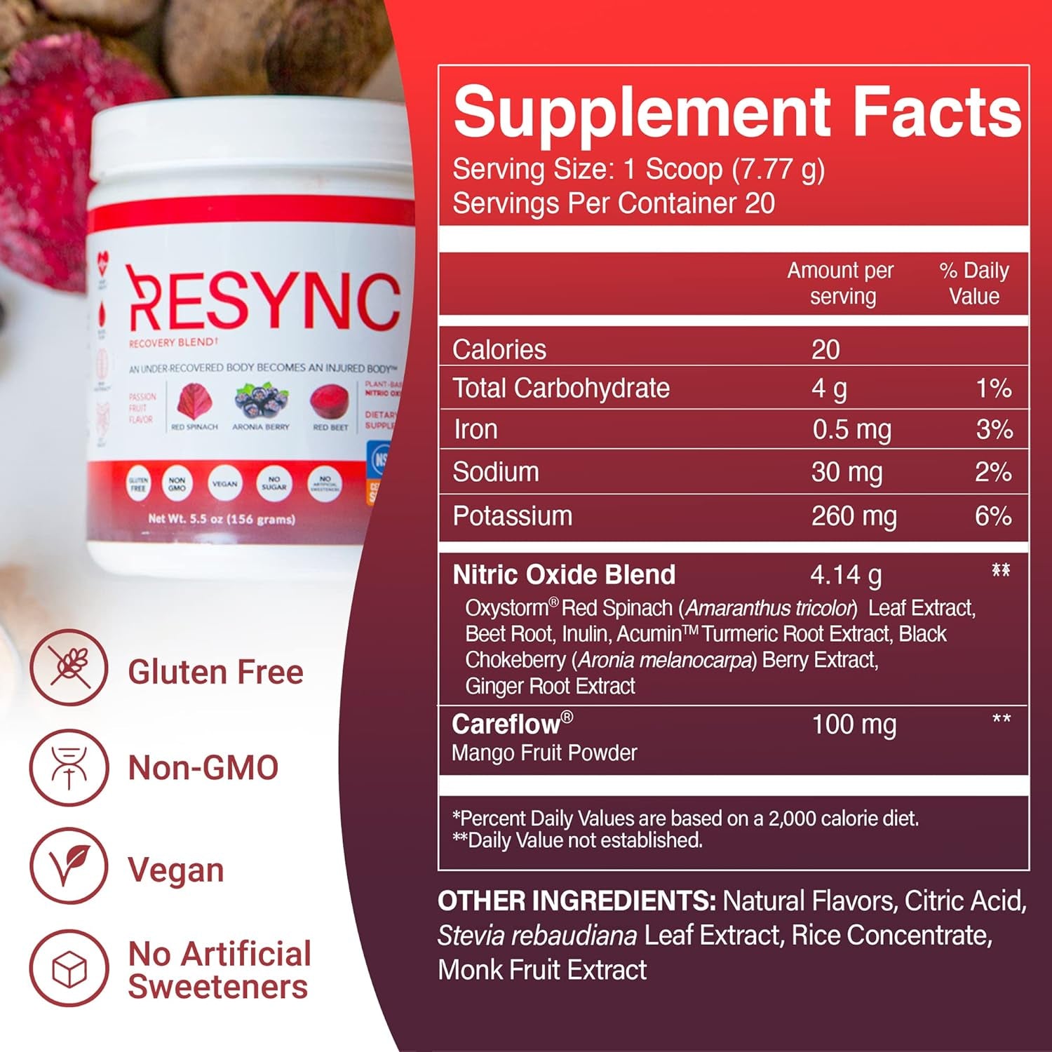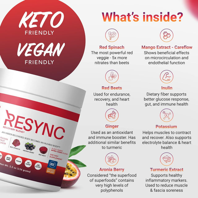 - A Potent Nitric Oxide Superblend - Resync Recovery Blend combines the health-giving benefits of red beet, and Aronia berries, and red spinach, which contains 5 times more nitrates than beets alone. This potent nitric oxide supplement is a better alternative to beet powder.