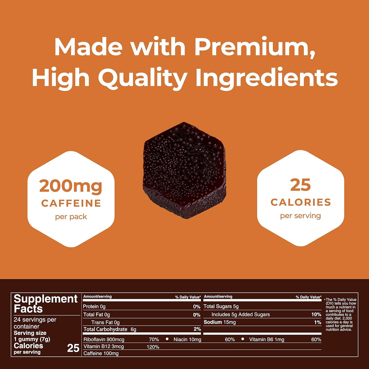 Seattle Gummy Company Caffeine Energy Gummies 12-Pack, Salted Caramel Chocolate Mocca Energy Chews, Nootropic, Vegan, Plant-Based, Gluten Free, 200Mg Caffeine