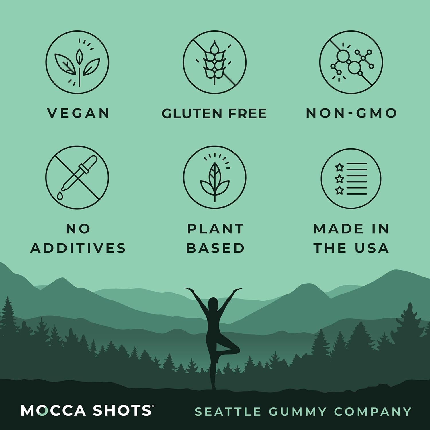 SGC Seattle Gummy Company Caffeine Energy Gummies 12-Pack, Mint Chocolate Mocca Energy Chews, Nootropic, Vegan, Plant-Based, Gluten Free, 200Mg Caffeine