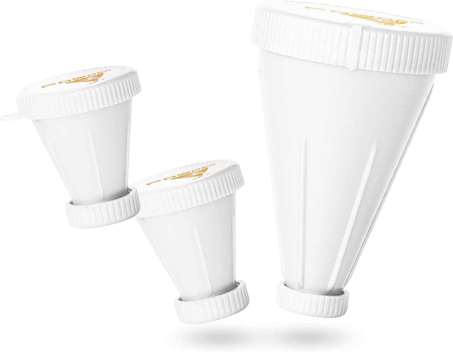 3-In-1 Protein Funnel Powder Device, Protein Powder Containers to Go, and Powder Mixer, Tight-Lock Containers for Protein Powder and Pre Workout Powder, Pack of 3, 150Cc and 25Cc, White - Powderjet