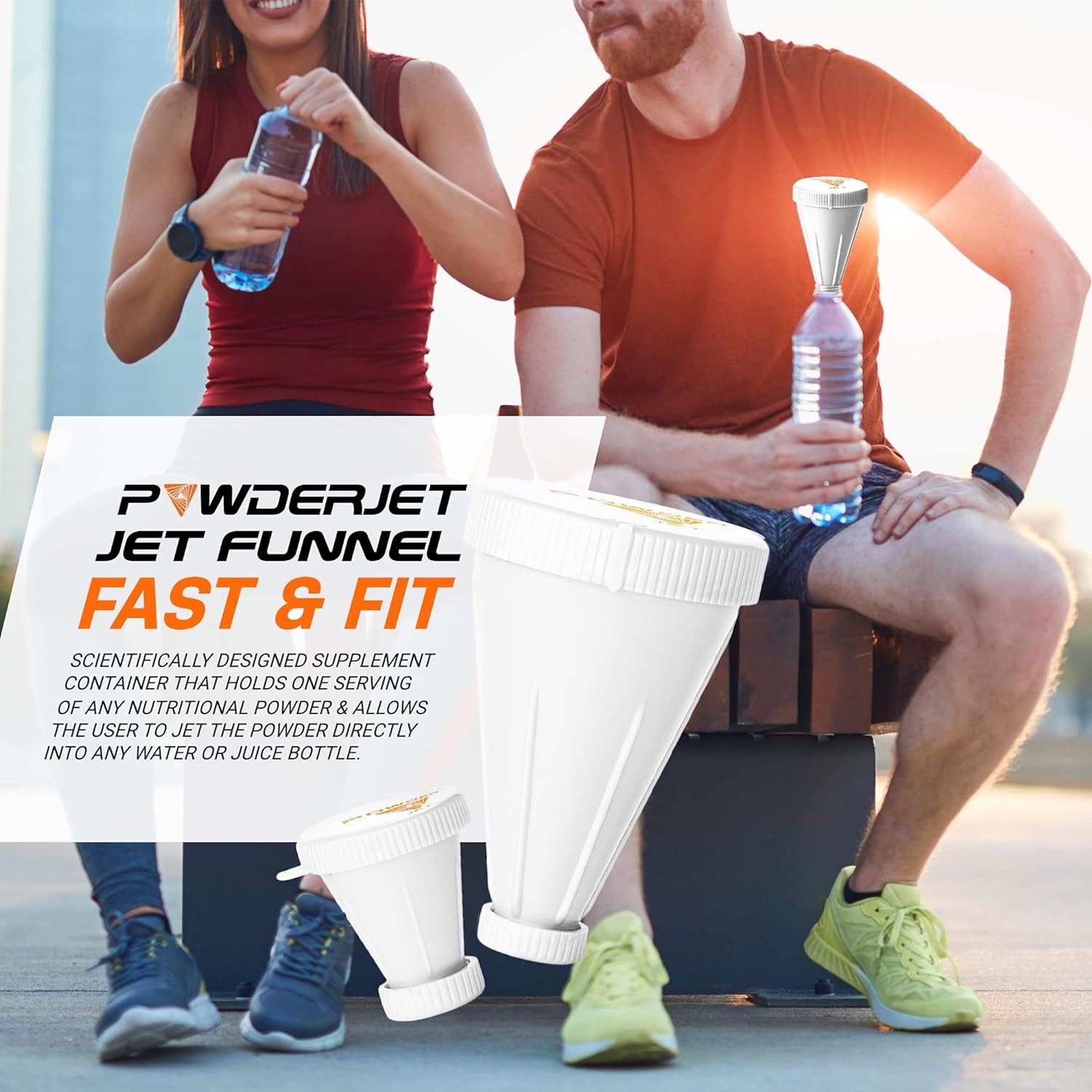 Do you want a convenient way to carry protein powders with you wherever you go? And do you also want a quick way to enjoy fresh and perfectly mixed workout drinks on-the-go?With PowderJet, you can enjoy all of these benefits in one device. It is a 3-in-1 powder device that can be used as a funnel, storage, and powder mixer.PowderJet has a wide mouth for easy powder loading without the mess. It creates a snug fit in water bottle openings, so you don't need to hold the funnel when scooping powder into it. The protein funnel also uses Patented Smart Flow Technology for smooth and quick powder flow. No more powder clogging and constant tapping of the funnel. Zero wasted powder!As the powder is dispensed through PowderJet, it becomes aerated and ready for mixing. Because of this, you can make perfectly-mixed and clump-free drinks every time!PowderJet is compact and lightweight, so it’s perfect to go containers. Aside from using it as a protein container, you can use it as vitamin holder and pill containers as well.If you’re worried about accidentally getting the powders all over your gym bag, don’t be! PowderJet has 2 screw caps that securely hold your supplement powder.It's easy to use. Simply pre-load your PowderJet for ready use. Choose your chilled drink and then drink a bit to create a space for the powder. Remove the small cap. Insert PowderJet into the water bottle and the powder will flow in. For better flow, open the jet vents by aligning the jet markers. Re-attach the water bottle cap, shake, and enjoy your drink!Why pay for expensive pre-mixed drinks and bring bulky shakers and tubs of protein powder? All you need is a bottle of chilled water and a PowderJet loaded with your favorite powder.Make PowderJet part of your daily workout necessities today!