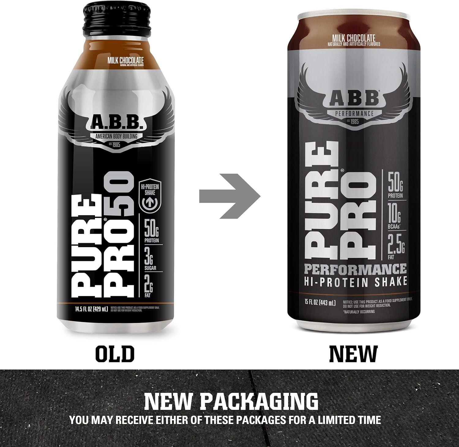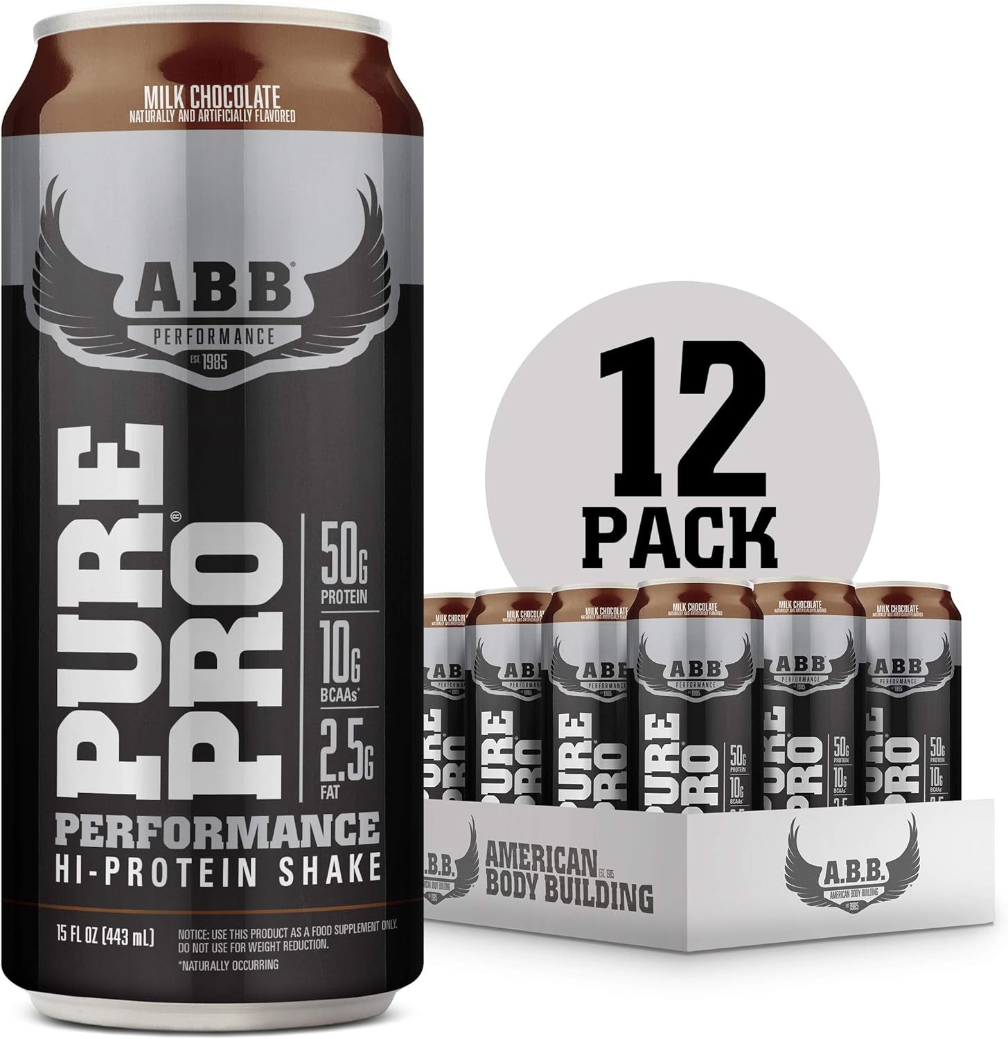 (ABB) Pure Pro 50, Post-Workout Recovery Protein Shake, Muscle Builder, Hi-Protein, Low Fat, Low Sugar, Milk Chocolate Flavored, Ready to Drink 15 Fl Oz (Pack of 12)