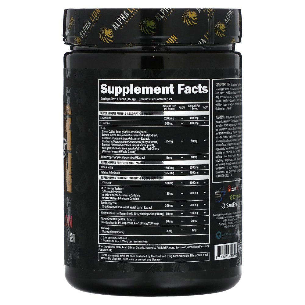 ALPHA LION Superhuman Extreme, Extreme Energy Pre-Workout Formula, Intense, Sustained Energy and Focus, Elevated Nitric Oxide, Maximum Pumps & Nutrient Delivery (21 Servings, Slaughtermelon) - Slaughtermelon is backordered and will ship as soon as it is back in stock.