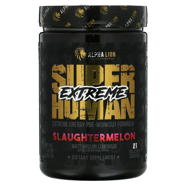 ALPHA LION Superhuman Extreme, Extreme Energy Pre-Workout Formula, Intense, Sustained Energy and Focus, Elevated Nitric Oxide, Maximum Pumps & Nutrient Delivery (21 Servings, Slaughtermelon)