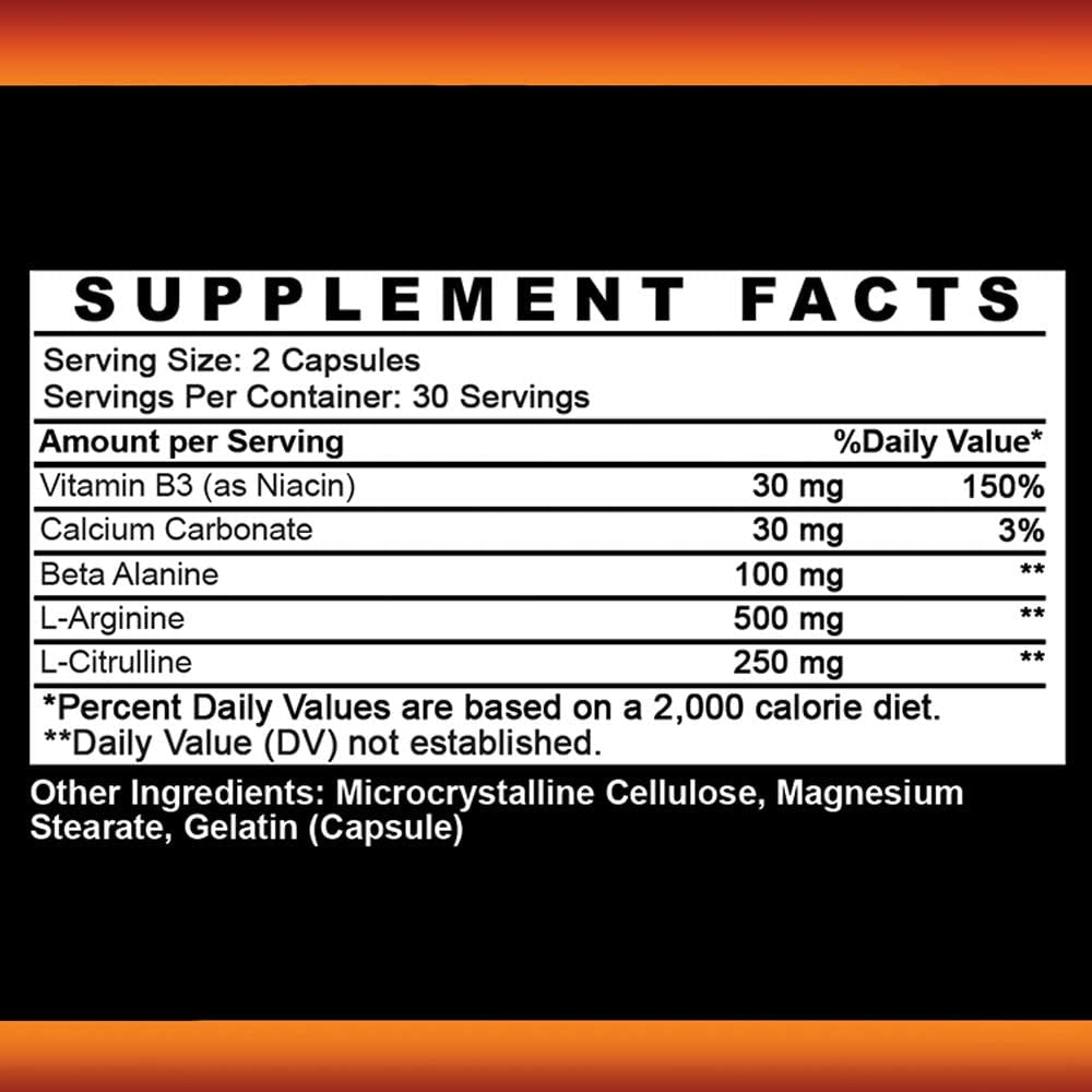 - SUPER STRENGTH L-ARGININE – Our Premium L Arginine stack includes Beta Alanine, L-Citrulline, Vitamin B3 and Calcium Carbonate, a precursor to Nitric Oxide (NO) production. We have combined the best NO ingredients with Citrulline to provide the ultimate, synergistic blend key Nitric Oxide ingredients to ensure you are getting ALL that Arginine can offer!