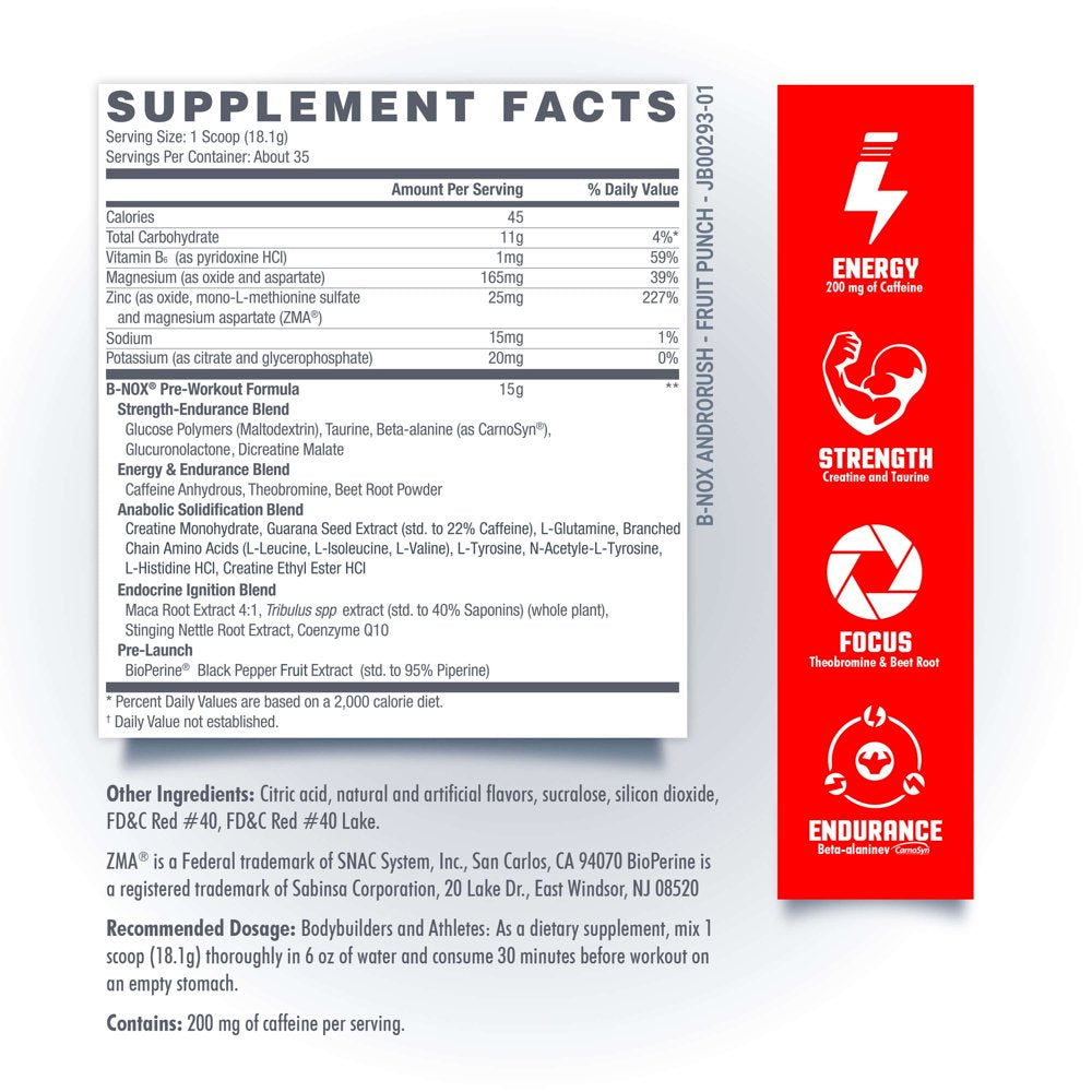 BNOX Androrush Preworkout Nitric Oxide Testosterone Blend Fruit Punch (1.4 Lbs./35 Servings)