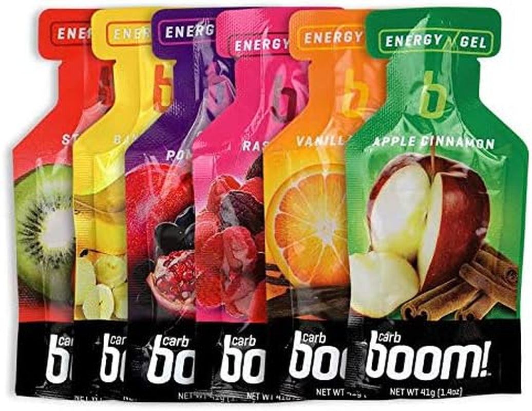 Boom Nutrition - Carb Boom Energy Gel - Fruit-Flavored Energy Gels - Workout Gel - Energy Gel for Cycling - Running Gel - Natural Energy Gel - Variety 6 Flavors (4 Each) - 24 Pack