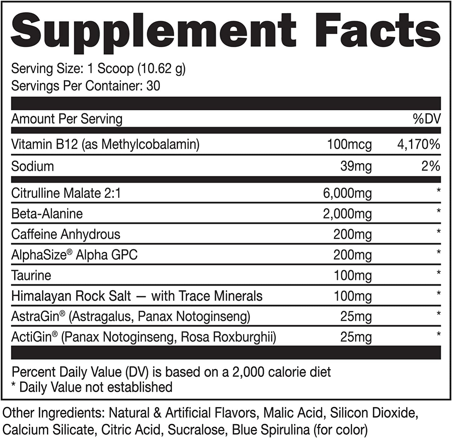 - AMAZING TASTE - Flavor like you've never had in a Pre Workout drink! Natural and Artificial Flavors with NO SUGAR or stevia. KETO FRIENDLY and fully transparent nutrition label. Supplement.- L-Citrulline (amino acid) β 6 Grams to Maximize Blood Flow (Nitric Oxide Booster)*