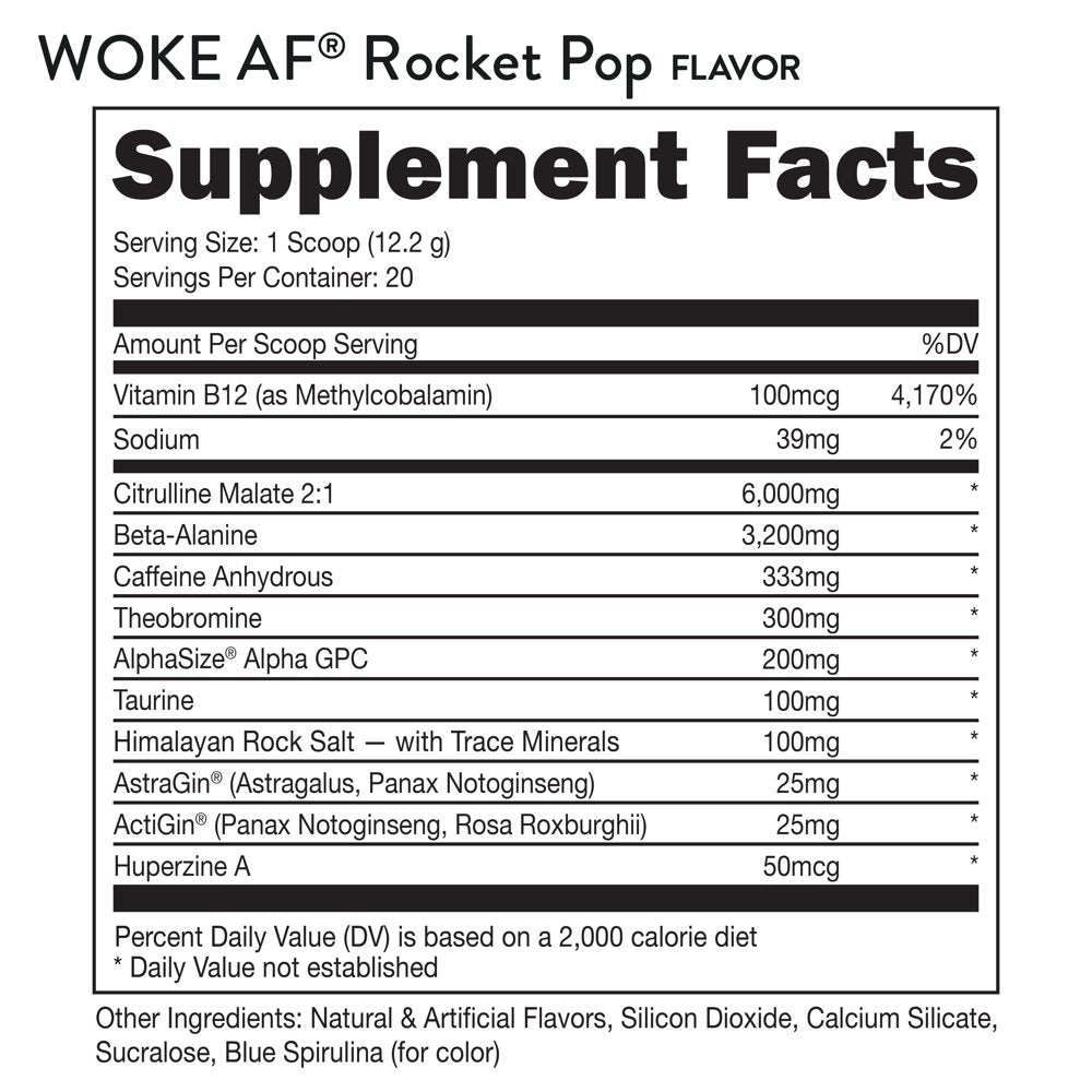 Bucked Up Woke Af Pre-Workout Powder, Increase Energy, Rocket Pop, 333mg Caffeine, 20 Servings