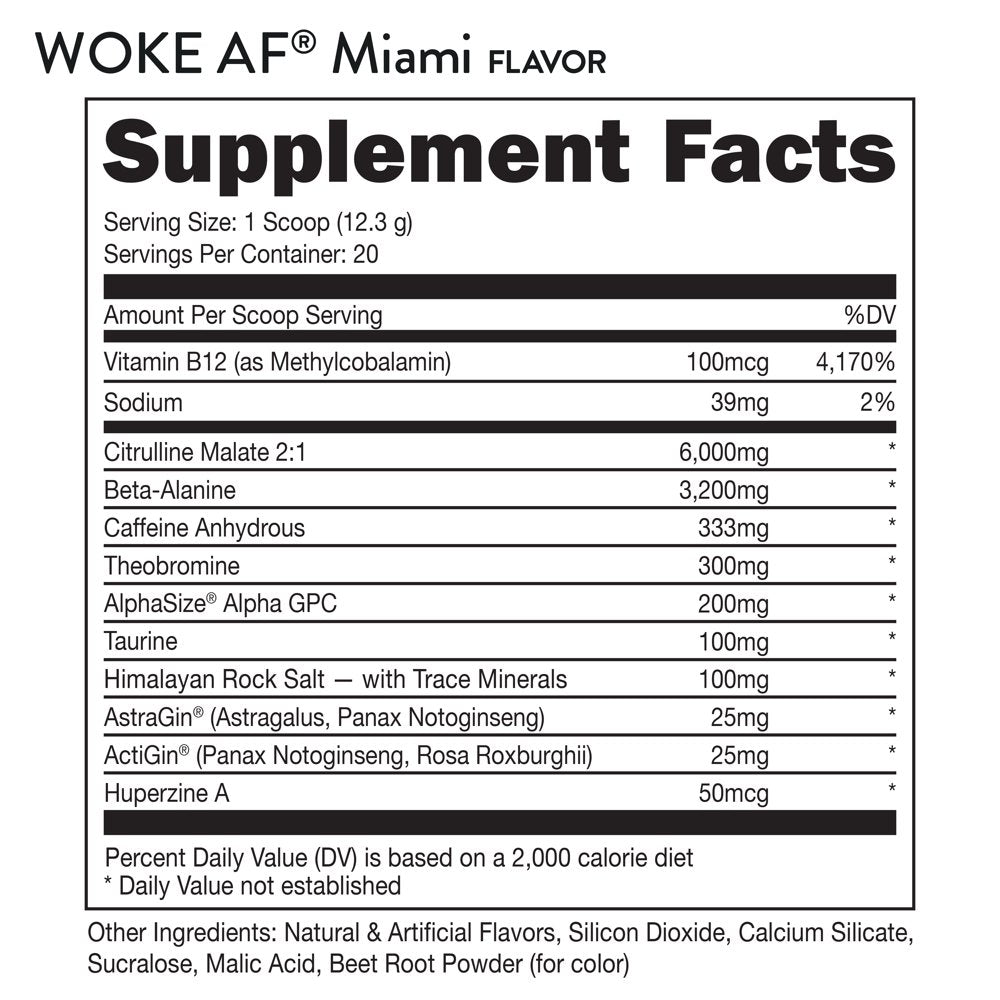 Bucked Up Woke AF Pre-Workout Powder, Increased Energy, Miami, 333mg Caffeine, 20 Servings