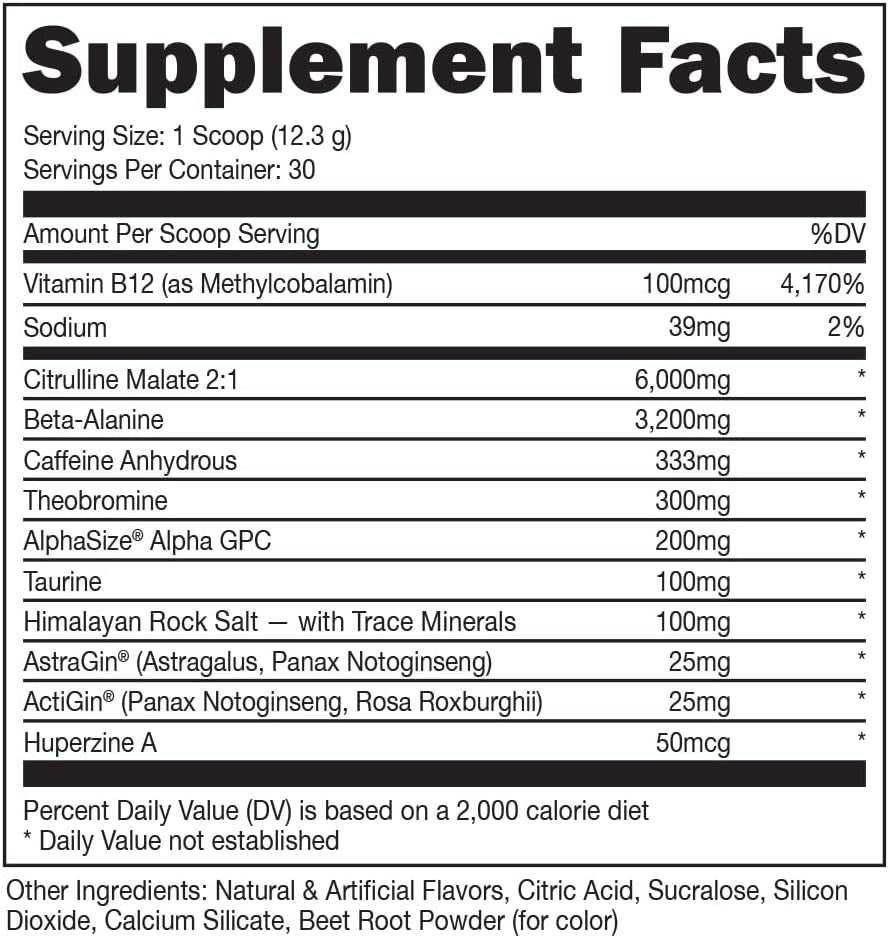 - AMAZING TASTE - Flavor like you've never had in a Pre Workout drink! Natural and Artificial Flavors with NO SUGAR or stevia. KETO FRIENDLY and fully transparent nutrition label. Supplement.- L-Citrulline (amino acid) – 6 Grams to Maximize Blood Flow (Nitric Oxide Booster)*