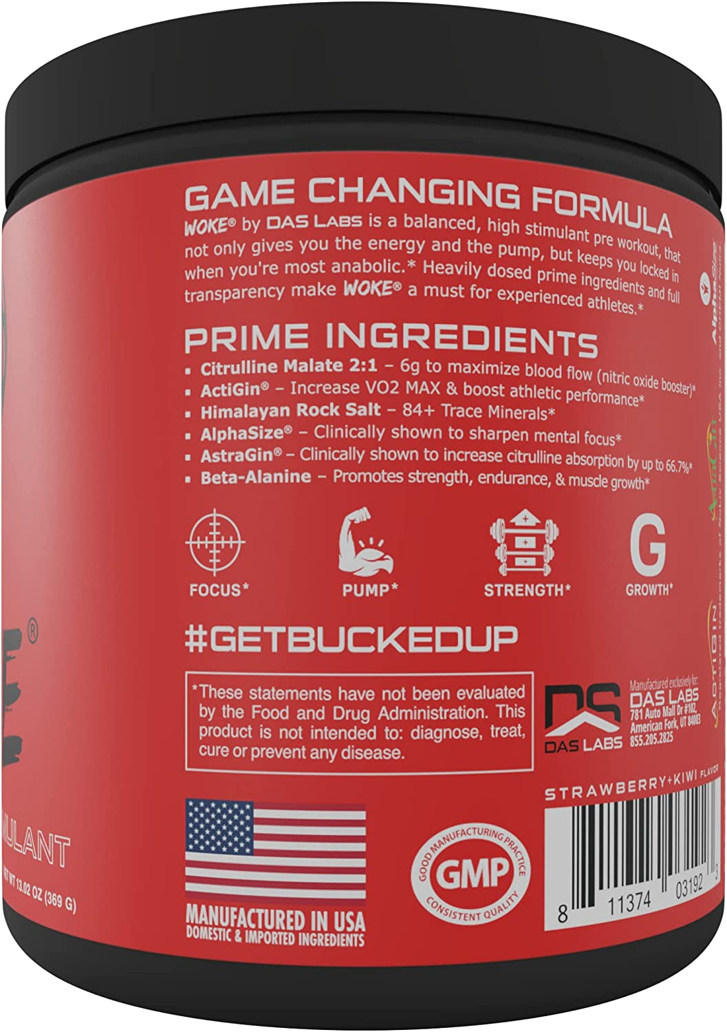Bucked up - Woke - HIGH STIM Pre Workout - Best Tasting - Focus Nootropic, Pump, Strength and Growth, 30 Servings (Strawberry Kiwi) - Strawberry Kiwi is backordered and will ship as soon as it is back in stock.